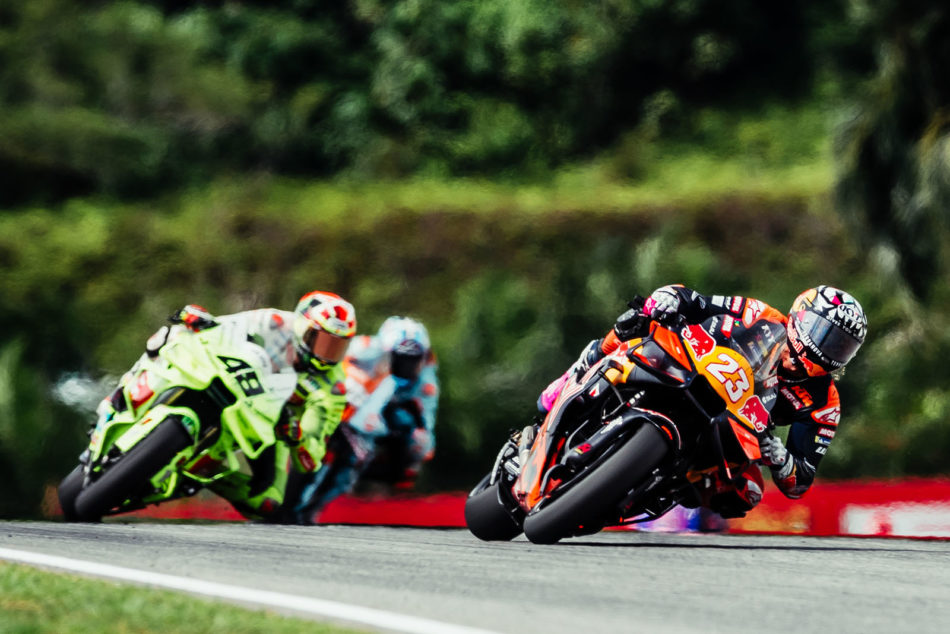 Binder (33) ici devant Bastianini confirme la bonne tenue des KTM en Malaisie