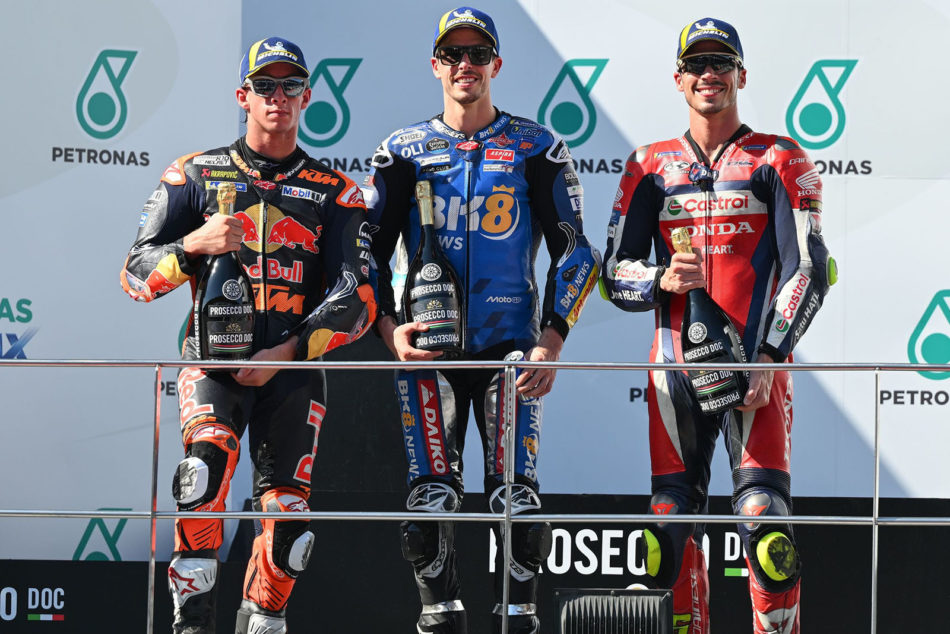 Lors du Grand Prix Petronas de Malaisie, Alex Márquez (BK8 Gresini Racing MotoGP) a surclassé ses adversaires et s’est imposé en solitaire devant Pedro Acosta (Red Bull KTM Factory Racing) et Joan Mir (Honda HRC Castrol).