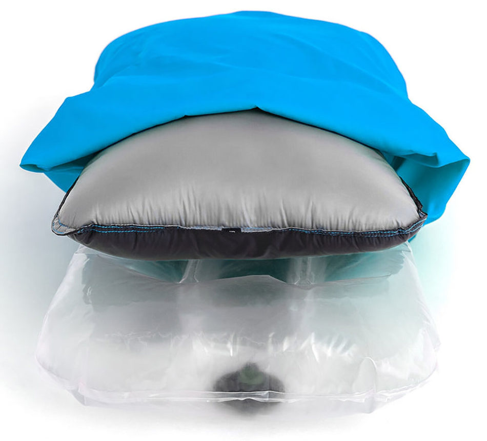 Le troisième élément de l’ensemble est l’oreiller SoftTop™, un modèle en trois éléments incorporant une vessie gonflable pour le soutien et le réglage de la hauteur, un sur oreiller en duvet, pour plus de douceur, ainsi qu’une taie d’oreiller séparée pour faciliter le lavage. Il garantit un confort suprême, dans un poids contenu. Par ailleurs, l’oreiller dispose de clips intégrés permettant de le solidariser au drap, l’empêchant ainsi de glisser du matelas, même si vous bougez beaucoup.