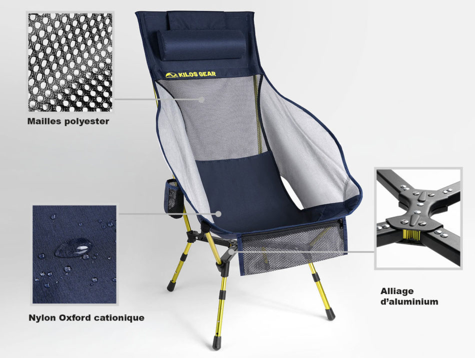 Si vous cherchez un fauteuil de camping polyvalent et de haute qualité vous offrant un confort royal, Kilos Gear vous propose son modèle GrandPeak à dossier haut.
