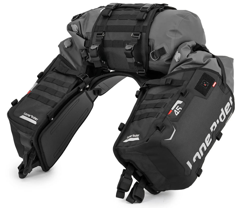 L’équipement français Lone Rider vient de lancer deux nouveaux ensembles de bagages souples, sans rack, les ADVBAGS 45 et ADVBAGS 16, en plus de dévoiler la version 2.0 de leur porte-bouteille, en deux formats : simple et double.