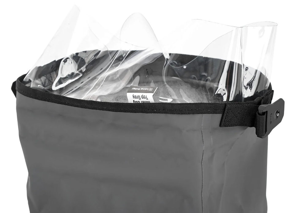 Malgré leur format réduit, ces deux systèmes font preuve de la même durabilité et de la même protection contre les intempéries que les ADVBags 70. Ils s’appuient sur la même architecture, à savoir une base modulaire à trois plaques, solide et universelle, qui accueille des sacs fabriqués en matériaux durables et étanches, conçus pour un usage intensif sur route et en dehors. Chaque sac latéral possède une fermeture Super Seal qui empêche la poussière et l’eau de pénétrer, même lorsqu’elle est mal roulée. Des valves facilitent la compression, et une sangle permet de bien insérer les sacs dans les étuis. Les boucles magnétiques assurent une fermeture rapide et facile avec des gants, tandis que les poignées intégrées rendent le transport pratique. Une fenêtre transparente sur chaque sac permet de visualiser rapidement son contenu sans avoir à tout déballer.