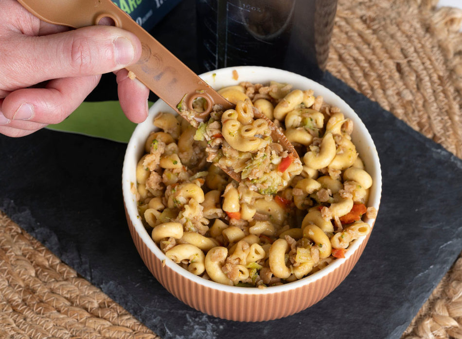Les repas se réhydratent à l’eau chaude ou froide, selon les repas. Il suffit d’ajouter de l’eau dans le sachet et de laisser reposer. Pas besoin de cuisson supplémentaire dans un chaudron.