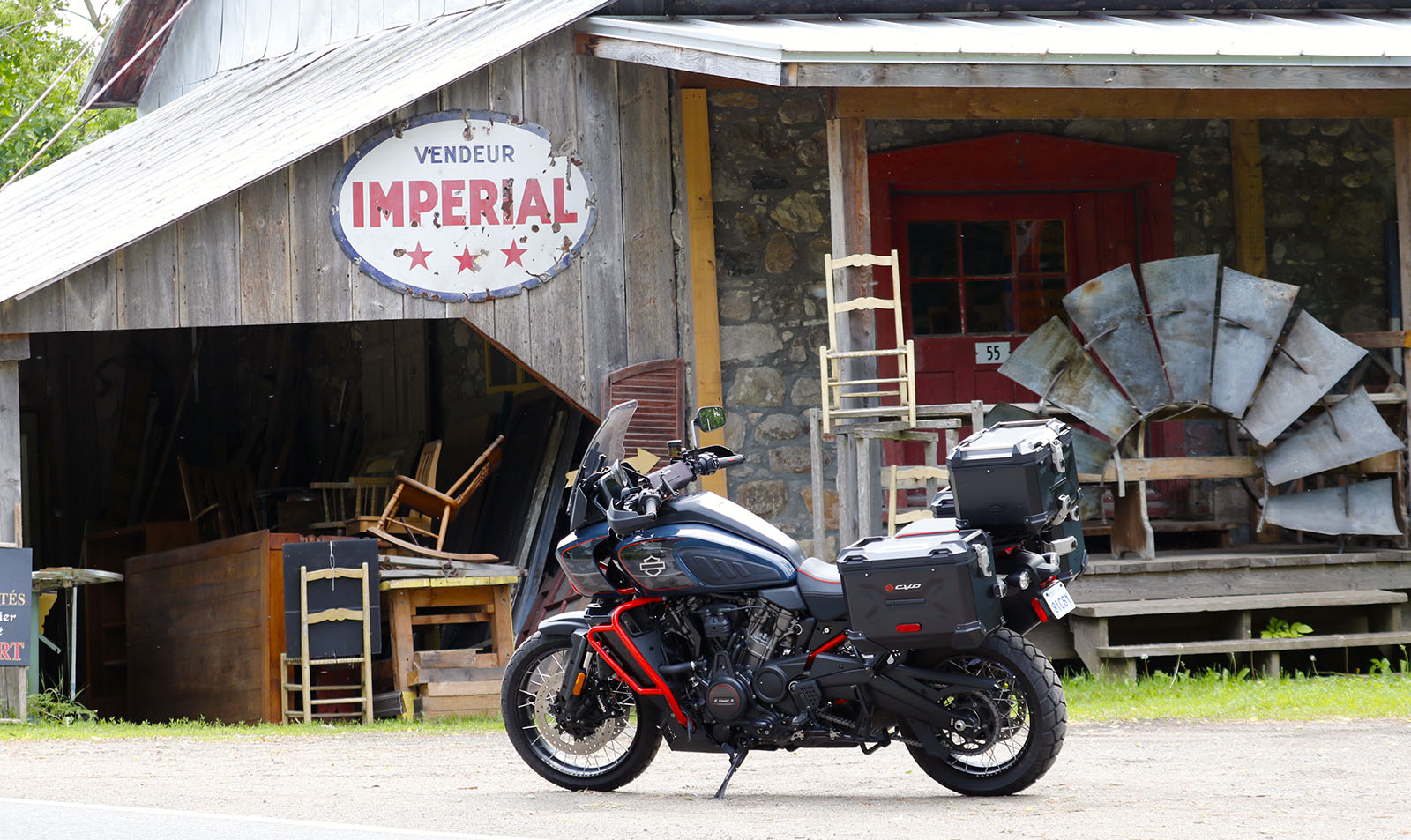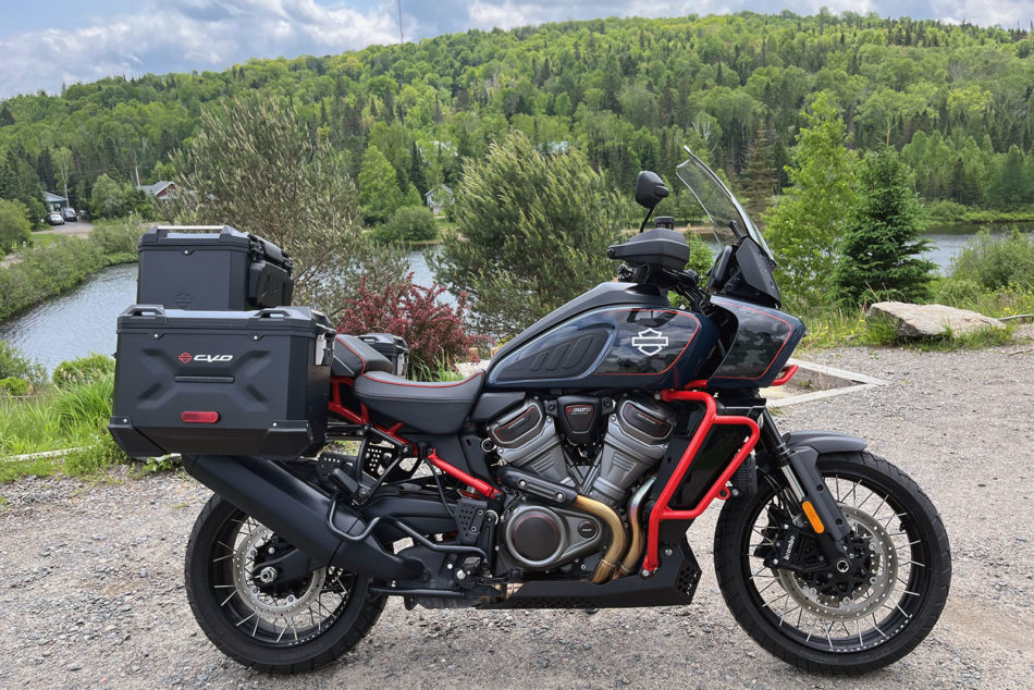 Bien que j’aie peu expérimenté la conduite hors route lors de cet essai, car je me sentais réticent à l’idée d’endommager une moto de plus de 35 000 $ dont je devrais assumer les coûts de réparation ou de remplacement en cas de bris, j’ai été agréablement surpris par la Pan America CVO sur les sentiers roulants des Laurentides. Malgré son poids élevé, pour une aventurière, elle se débrouille bien dans les sentiers faciles et rapides, malgré sa roue avant de 19”. En revanche, ses pneus relativement larges, ses débattements de suspension peu importants (191 mm aux deux extrémités), sa garde au sol limitée (180 mm) et sa position de conduite debout contraignante la brident en hors route. De même que ses valises rigides. Néanmoins, l’électronique de la Harley lui permet de masquer un peu ses lacunes physiques en sentier.