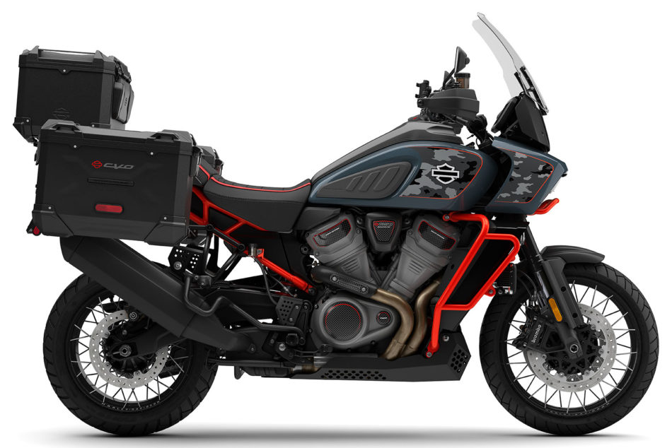 La Harley-Davidson CVO Pan America a été inaugurée en 2024. Cette année, elle revient inchangée, si ce n’est de sa robe qui affiche un superbe coloris bleu carbone/camouflage. Il s’agit d’une version suréquipée de la Harley-Davidson Pan Am 1250 originale, que nous avons testée en 2021.