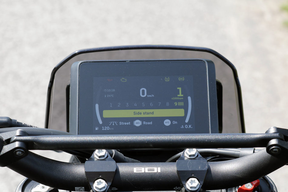 Sur ma moto d’essai, j’avais également les options Easy Shit (le shifter bidirectionnel de Husqvarna) et le régulateur de vitesse.