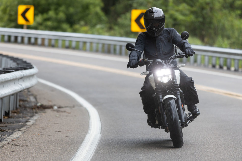 La coupe européenne est près du corps et se montre élégante et distinguée. La veste peut facilement être portée avec un jean de moto ou un pantalon imperméable, comme le REV’IT! Axis 2 H2O et passe inaperçue. Avec elle, on n’a pas l’air d’un motard pur et dur et on a l’impression de porter une veste citadine classique.